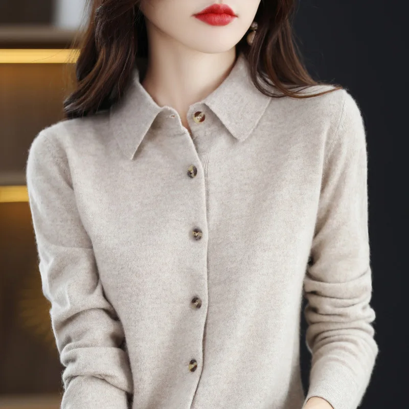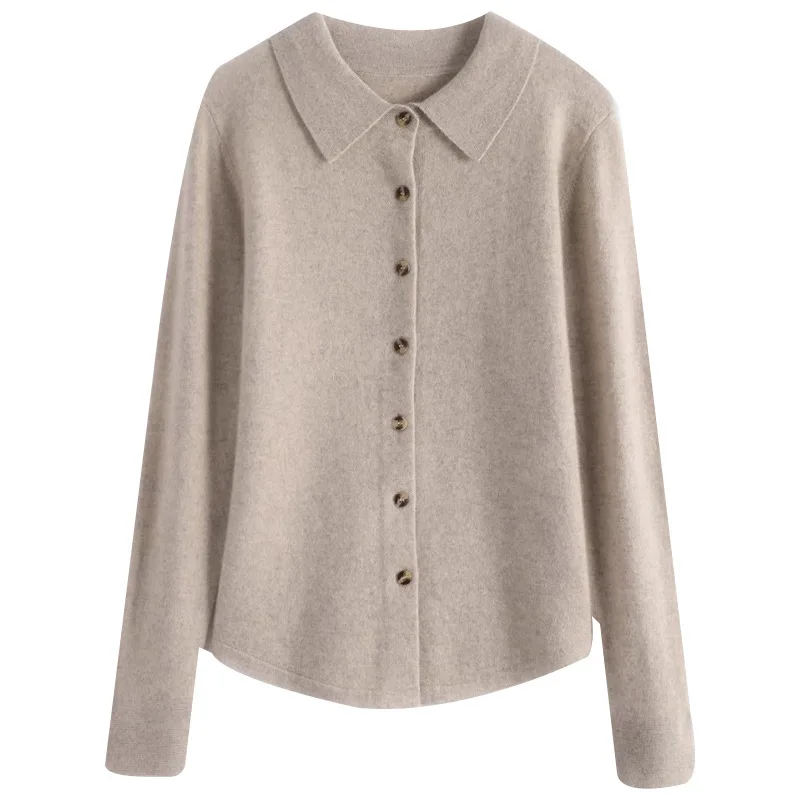 Women's Wool/Cashmere Knit Cardigan Outerwear Turn-down Collar Button Base Layer Thick Breathable Solid Silk-like Sheen Sweater